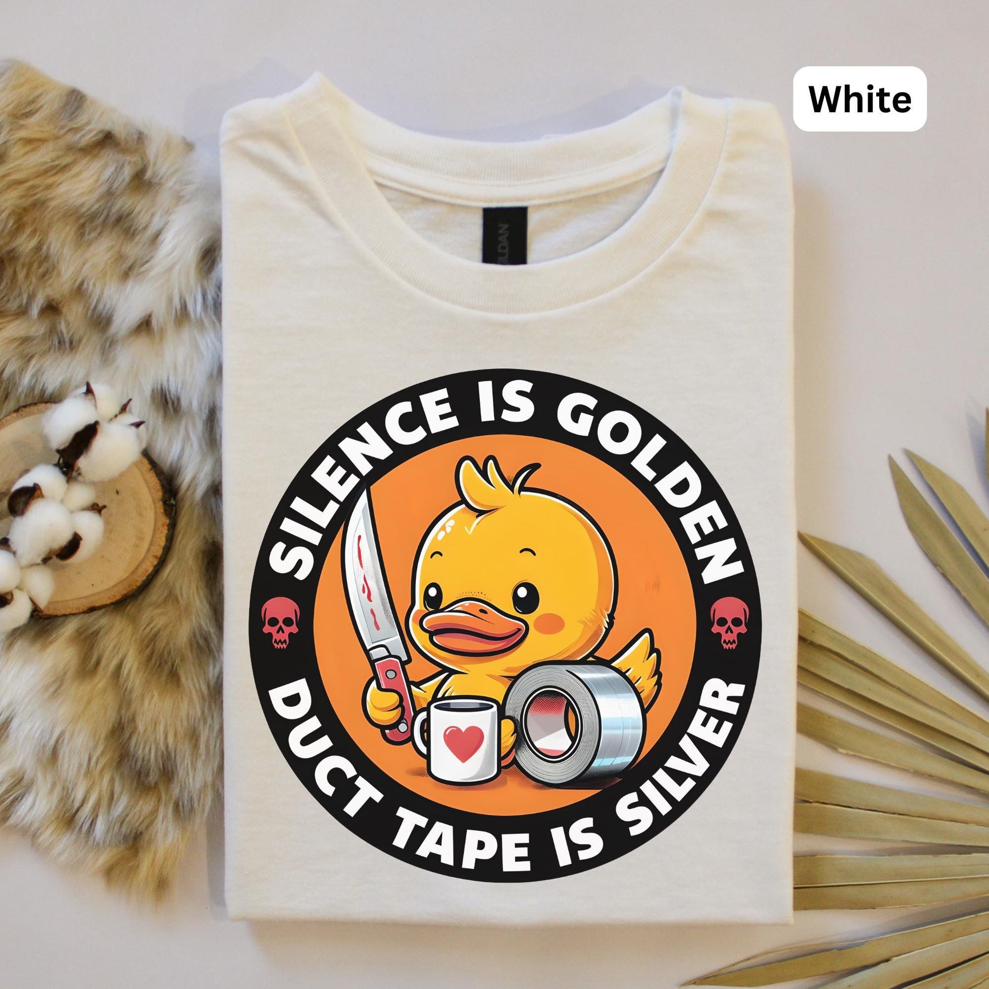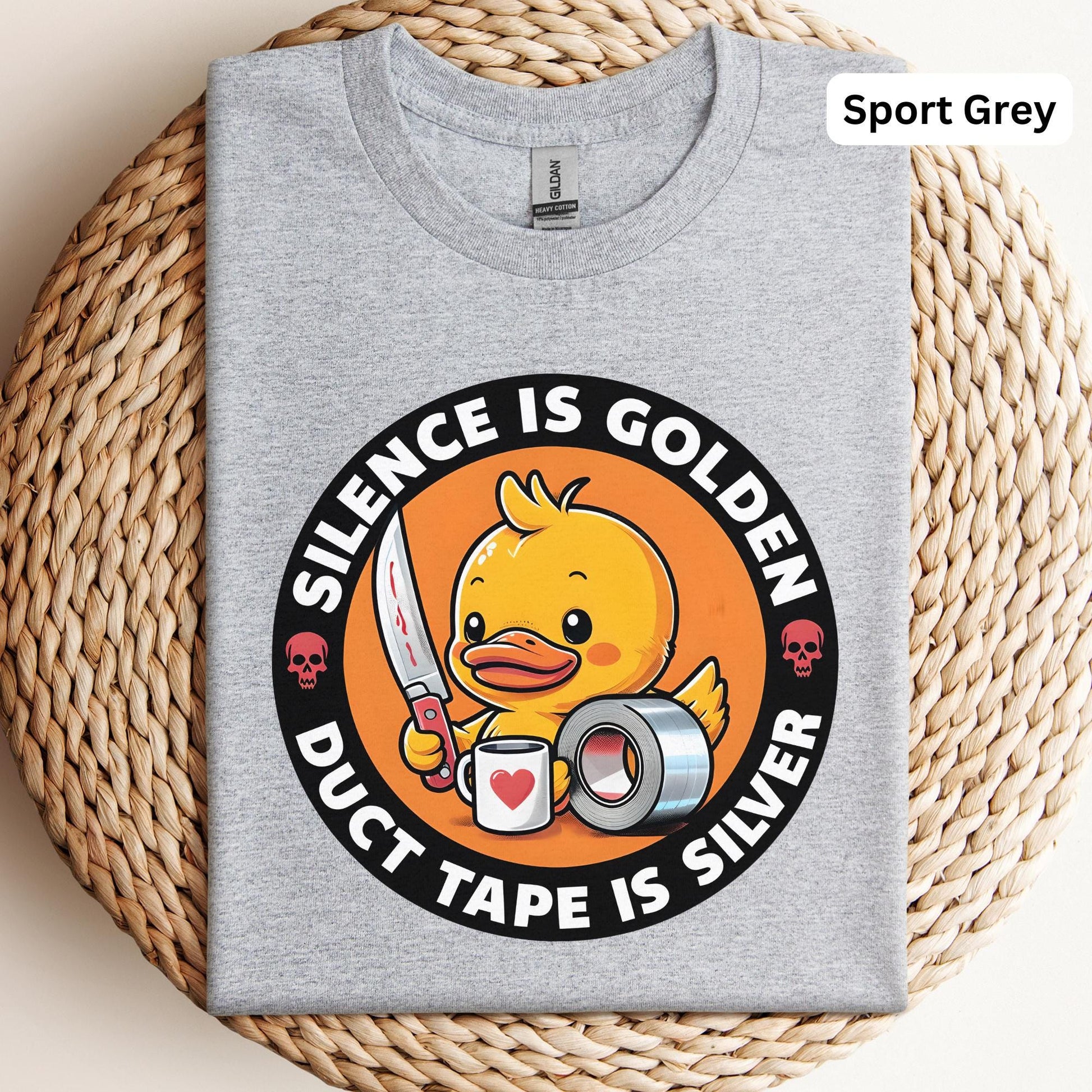 Make a statement with our "Silence Is Golden, Duct Tape Is Silver" shirt, a perfect blend of adult humor and quirky charm that every duck lover will appreciate! This funny animal shirt not only brings a smile but also sparks conversations—grab yours today and wear your wit proudly!